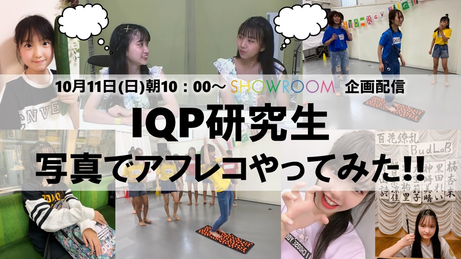 10/11(日)開催!IQP研究生、公式SHOWROOMチェンネルでの15名企画配信
