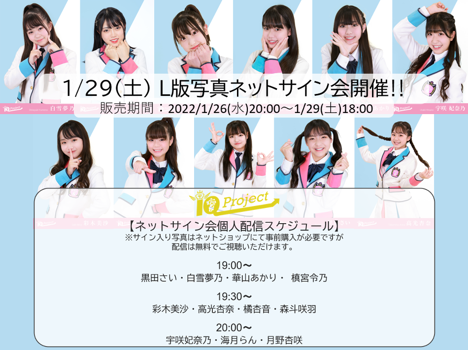 【IQP研究生】1/29(土)ネットサイン会 メッセージ付きL版写真2枚セット(11名)