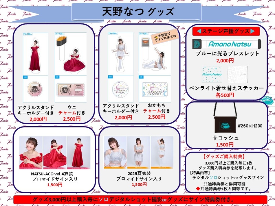 天野なつ7周年 LIVE 「7th mile」の応援ポスターとL版写真5枚セット、個人Zoom、動画メッセージ+1コーラス歌唱動画をご準備しました。