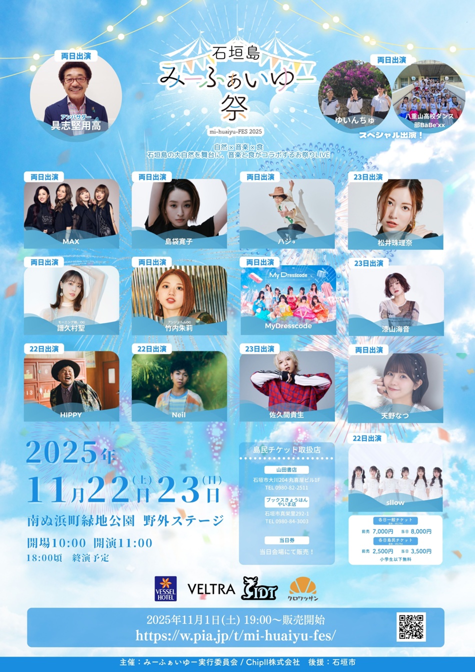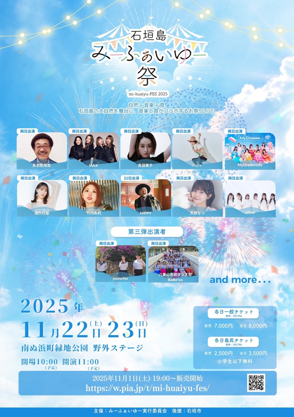 11月22日(土)・23日(日)沖縄県・石垣島にて開催される「石垣島 みーふぁいゆー祭」に天野なつが出演します。