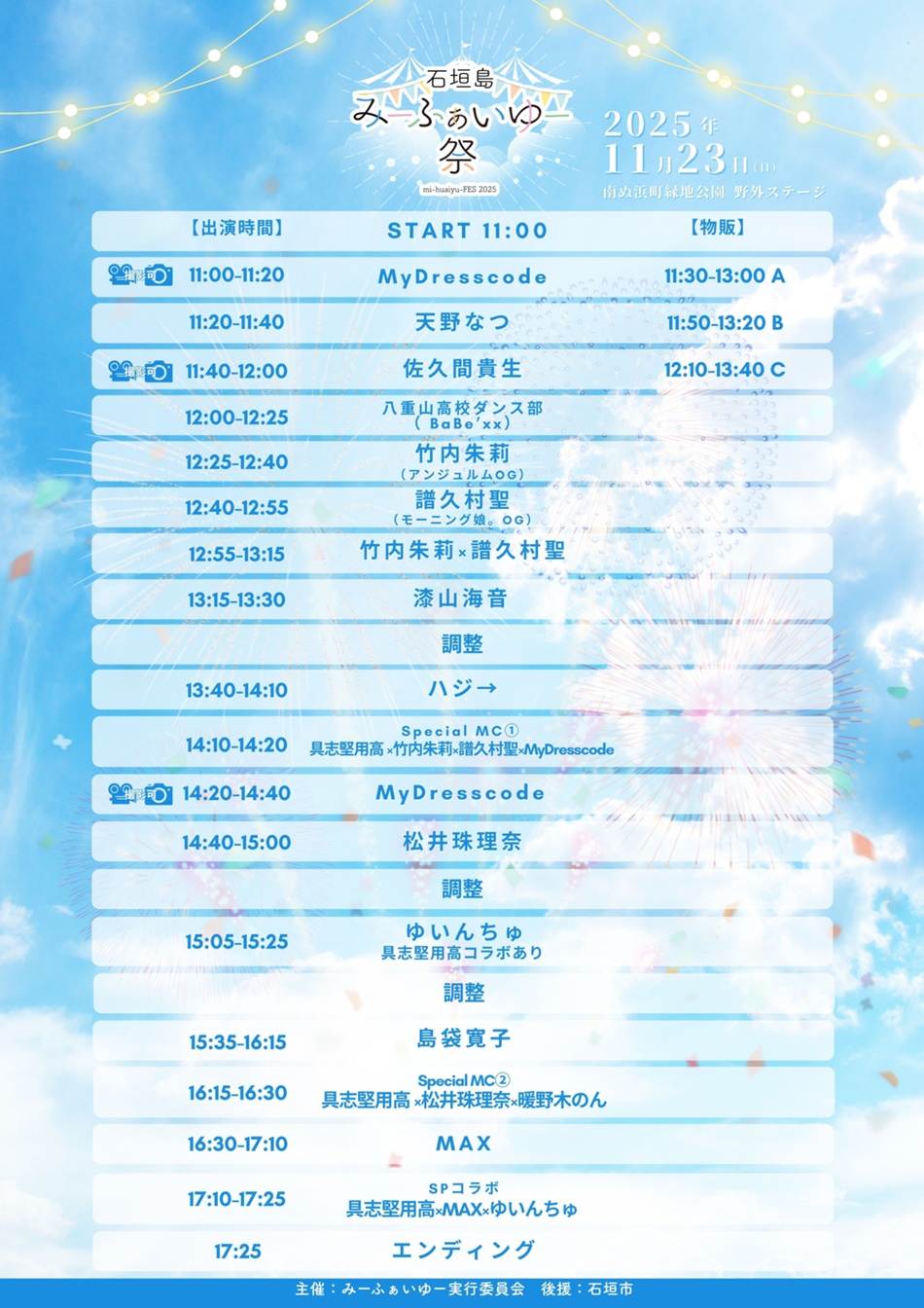 具志堅用高 / MAX / 島袋寛子 / ハジ→ / MyDresscode / 竹内朱莉(アンジュルムOG) / 譜久村聖(モーニング娘。OG) / HIPPY [22日出演] / 松井珠理奈 [23日出演] / Neil [22日出演] / 佐久間貴生 [23日出演] / 漆山海音 [23日出演] / 天野なつ / sllow [22日出演]