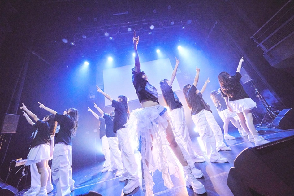 一番のサビが終わるタイミングで紗幕が落ちるとダンサーたちの顔ぶれも明らかに。おなじみのIQプロジェクト研究生・月野杏咲、宮岡ゆあに加え、莉こ、ako、さらにLinQから海月らな、華山あかりが参加!一体感のある艶やかなパフォーマンスで、会場を盛り上げます。なっちゃんもクールに歌い、早くも客席は総立ちになっていました。