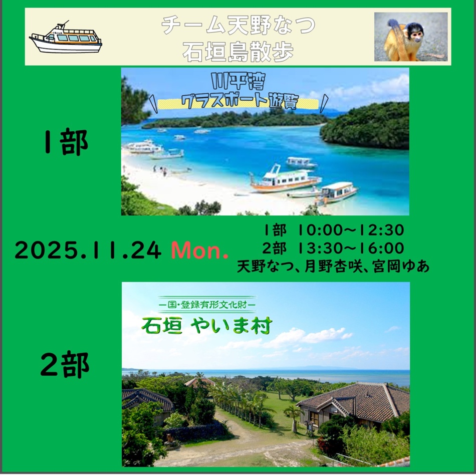 ●1部・2部通し券:8,000円 グラスボート乗船券・やいま村入場券付き