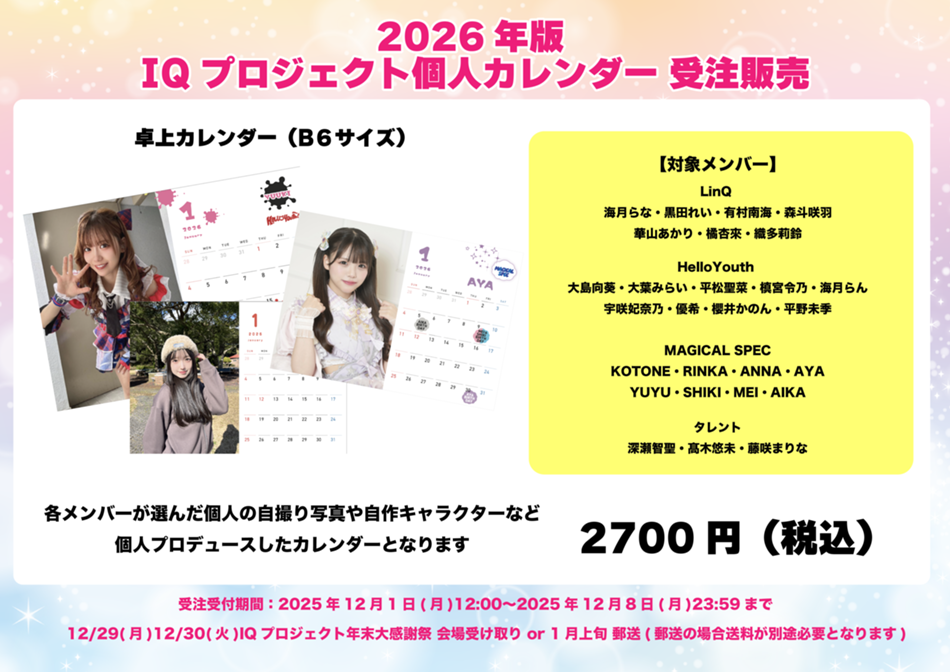 メンバーが選んだ写真でデザインされたオリジナルカレンダーとなります🗓️