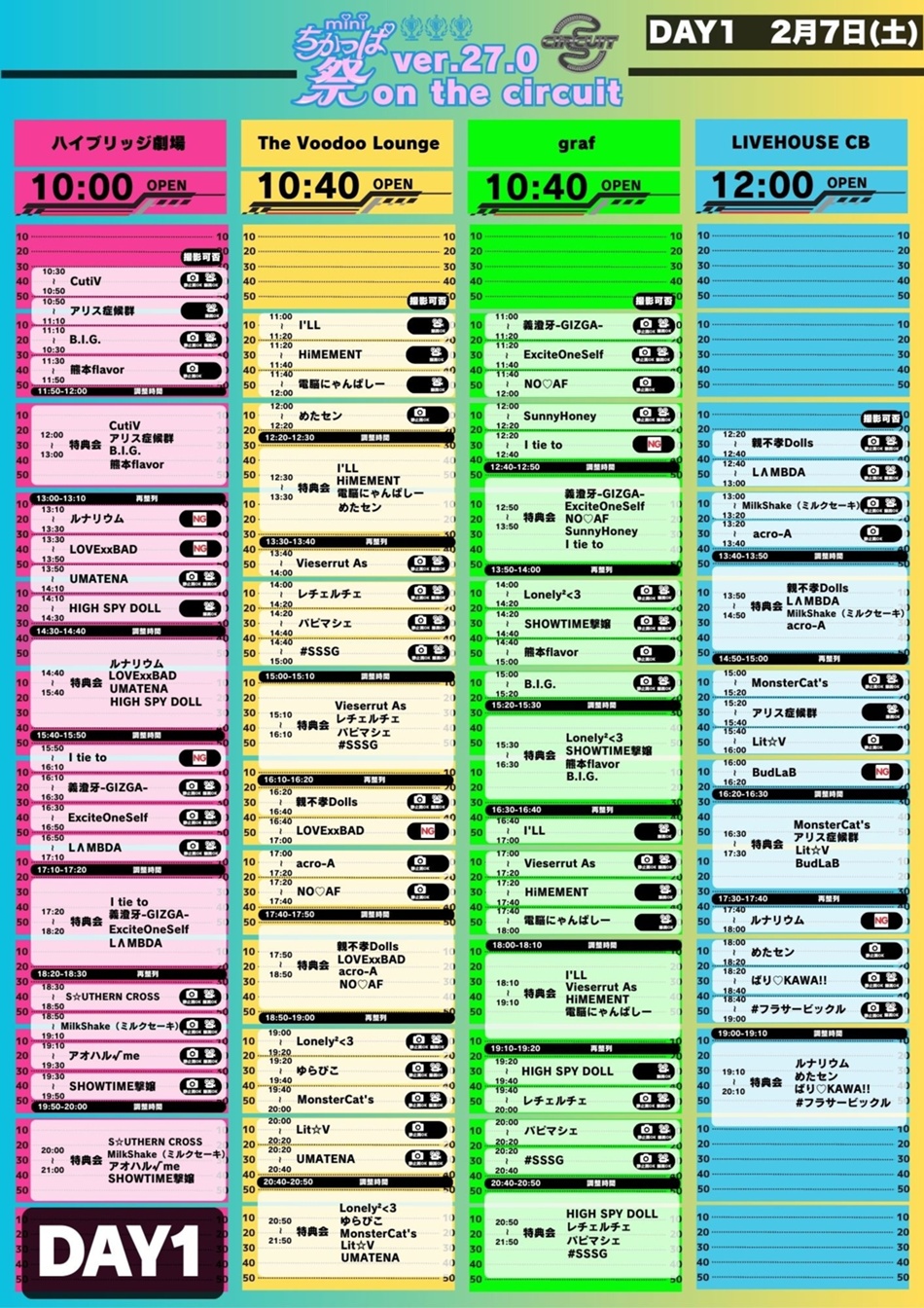 (その他、物販、特典会、移動時などステージ以外の出演者の撮影は禁止です)