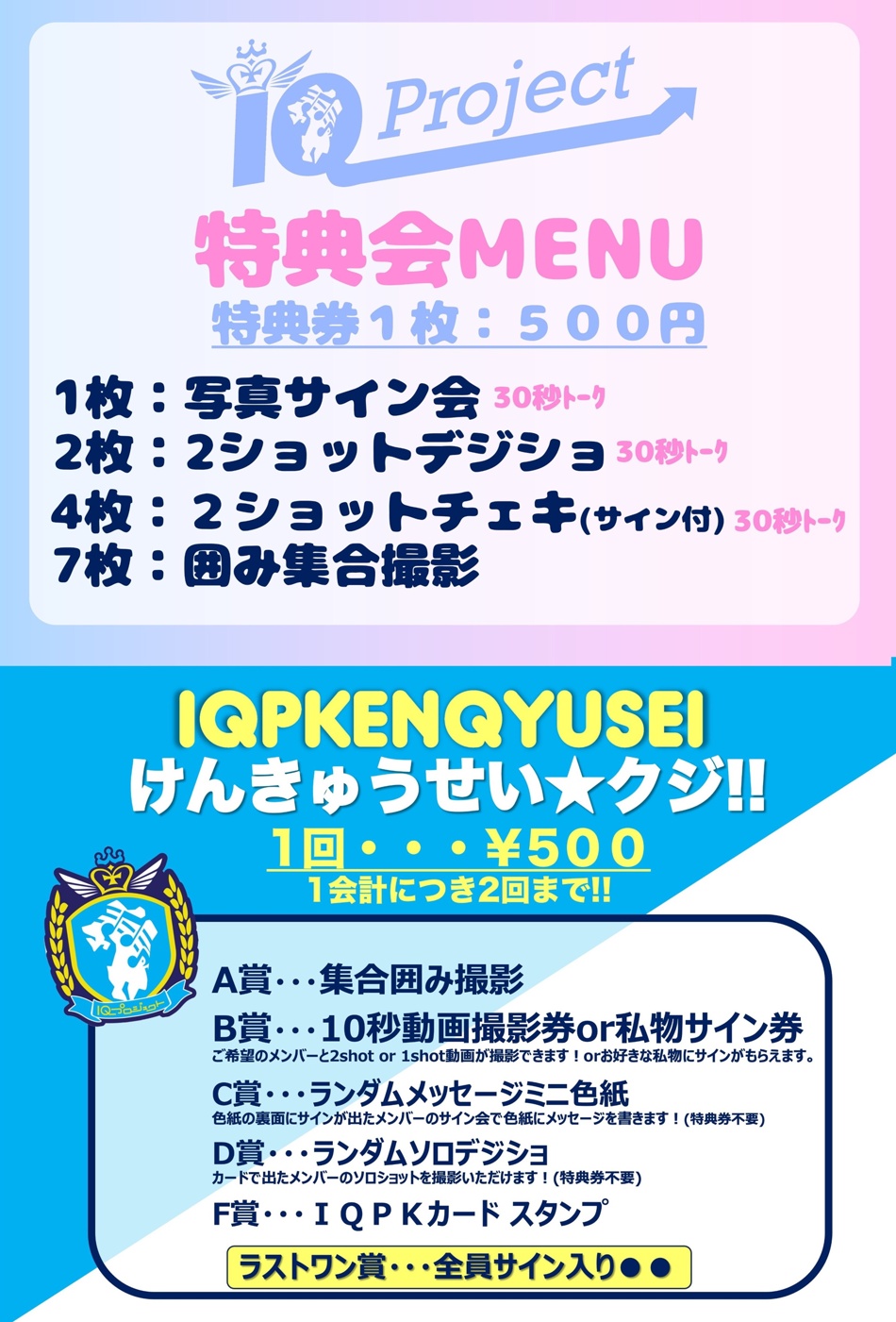 【IQプロジェクトファンクラブ無料2ショット撮影券について】
