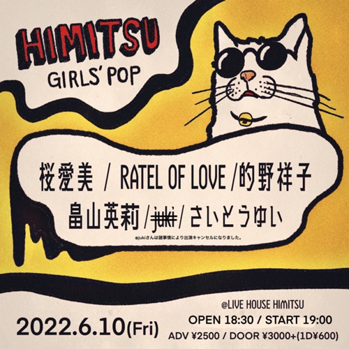 2022年6月10日(金) 「HIMITSU GIRLS'POP」 @ライブハウス秘密 開催HIMITSU GIRLS'POP2022年6月10日(金) 【会場】 ライブハウス「秘密」 https://live-himitsu.com/category/live/ 福岡市中央区大名1-3-29 DAIMYO 582ビル1F 開場 18:00 18:30 開演 18:30 19:00...