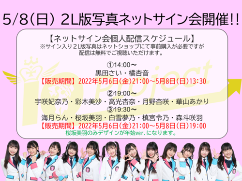 5/8(日) 「IQプロジェクト研究生4th公演 みちのりⅡvol.44・45~のびのび伸びろ7人公演~」の個別SHOWROOMチャンネルにてネットサイン会の開催が決定いたしました!!ネットサイン会では、メンバーがサインを書いている模様やフリートークなどを配信致します。各メンバーのチャネルフォローも宜しくお願い致します! 是非ともお楽しみください!! ★LIVE配信スケジュール・チャンネル★202...