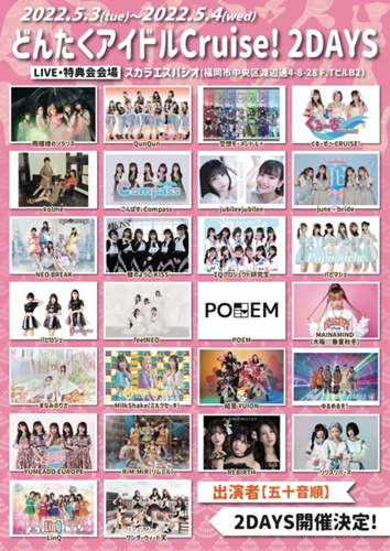 5月4日(水祝)【福岡】「どんたくアイドルCruise! 2DAYS」出演決定!