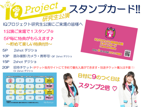※2022年4月9日より内容を変更し、新たなスタンプカードの配布になります。※2022年3月20日まで配布しておりました旧スタンプカードにつきましては引き続き特典をご使用いただけます。 メンバーSNSはこちら✔メンバーが毎日更新中♪IQP研究生・BudLaBメンバー公式TwitterIQプロジェクト研究生公式TikTokIQプロジェクトファンクラブ☆新規会員様募集中☆入会すると、FC先行チケットや...