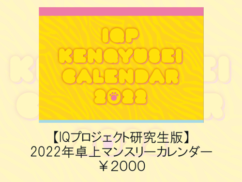 1月20日(木)【ネットショップ】「【IQプロジェクト研究生版】2022年卓上マンスリーカレンダー」販売開始!