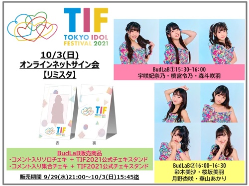 10月3日(日)【TIF2021オンライン特典会】「BudLaB Limited Stand/リミスタ」 販売開始!