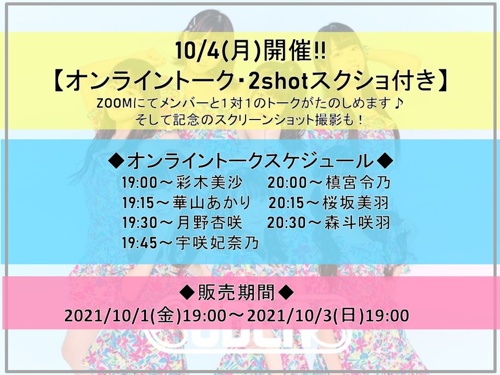10/4(月)開催【ネットショップ】BudLaB限定商品『オンライントーク・2ショットスクショ付き』販売スタート!販売は、10/1(金)19:00~10/3(日)19:00オンライントークとは… メンバーと1対1で1分間のZOOMでのビデオ通話をお楽しみいただける内容となっております! そしてトークの後には2shotスクリーンショットができる特典付きです! ★販売詳細★BudLaB限...