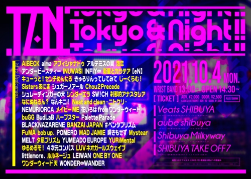 10/4(月)【東京】「 Tokyo & Night!! 」BudLaB出演決定!