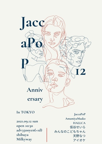 JaccaPoP 12ANNIVERSARY in 東京JaccaPoP 12ANNIVERSARY in 東京 2021年9月12日(日) @渋谷Milkyway http://www.shibuyamilkyway.com/new/OPEN 10:30 CLOSE 14:30 ADV 3500円(+1D) TiGET https://tiget.net/events/144937【出演】 J...
