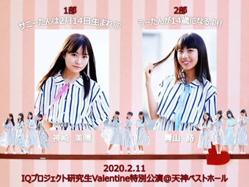 2/11(火・祝)【福岡】「IQプロジェクト研究生Valentine特別公演」 1、2部 詳細のお知らせ