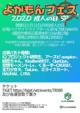 1/13(月・祝)ベイサイドライブホール「よかもんフェス 2020 成人の日 SP」IQP研究生 出演