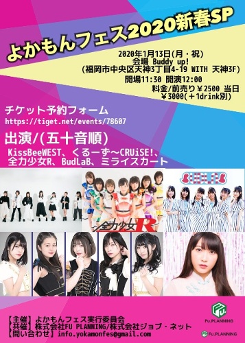 1/13(月・祝)【福岡】buddy up!「よかもんフェス 2020 新春SP」BudLaB 出演