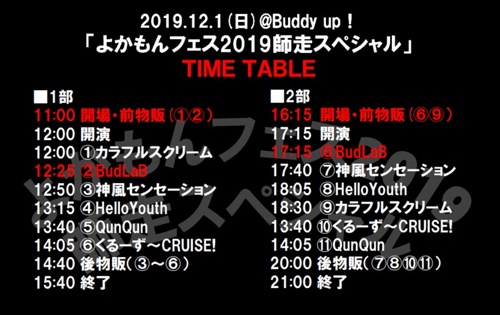 12/1(日)Buddy up!「よかもんフェス2019師走スペシャル」1,2部BudLaB出演